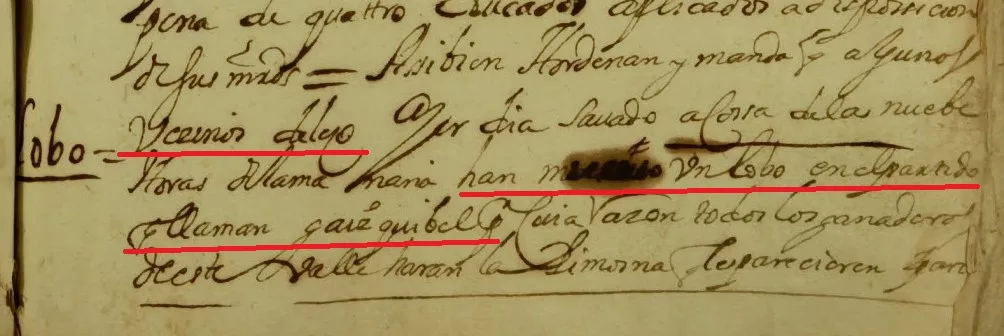 “…que algunos vezinos de Lezo, ayer, día sáuado, a cossa de las nuebe horas e la manana, han muerto vn lobo en el partido que llaman Gaizquibel…”