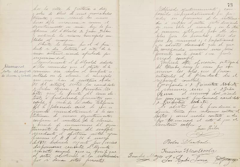 Gobernu aldaketa ekarri zuten hauteskundeak apirilaren 12an izan ziren arren, hilabete horretako 18. egunean aurreko udalbatzak jarraitzen zuen Getarian. Udal-akta liburutan irakur daitekeenez, udalbatza berria osatzeko arazoak izan zituzten. Udal gobernu berria osatu behar zuten zinegotziak hautatzeko garaian, bi hautetsien arteko boto berdinketa gertatu zen; Isidoro Txueka eta Primitivo Urbietaren artean hain zuzen ere.