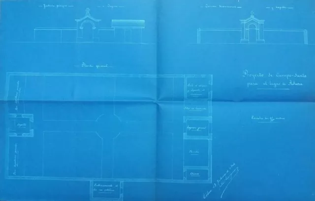 Proiektuaren diseinurako Tolosako Julian Eizaguirre kontratatu zen eta honek 7000 pezeta baino gehiagoko aurrekontu bat, planoak eta memoria aurkeztu zituen. Diseinu horretan eremu osoak edukiko zituen zona desberdinak deskribatzen dira: kapera, autopsiak egiteko gela, hezurtegia eta beste zona batzuk. Udalbatzarra orduan, proiektuari oniritzia eman eta finantziazio bila hasi zen. Adunako parrokiari galdetuta, honek diru nahikorik ez zuela erantzun zuen, baina hori bai, Timoteo Yraolak bere dirua emateko prest zegoela adierazi zuen Udalak beharrezkoa zela uste bazuen.