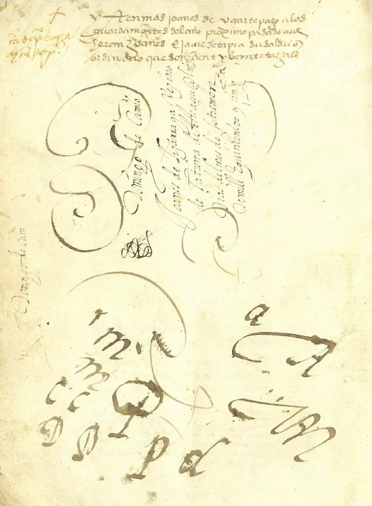 Beste batzuetan notario-dokumentu baten hasierako esaldi edo hitzak jaso ditzakete, hala nola: “Joanes de Lizarraga, vezino de la tierra de Asteassu, a diez días del mes de setiembre de mill e quinientos y cinquenta”, “La merced que V. Merced hizo a mi hermano”, “memoria de los maravedís (?)”,“De la memoria de mí, Marticho”, eta abar. (Ikusi 1.go irudia)