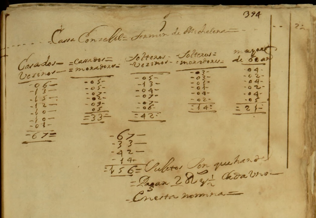 1734an Bailaran bizi ziren gizonezkoen zergadun-multzoak (A-1-34-1, 394 au.)