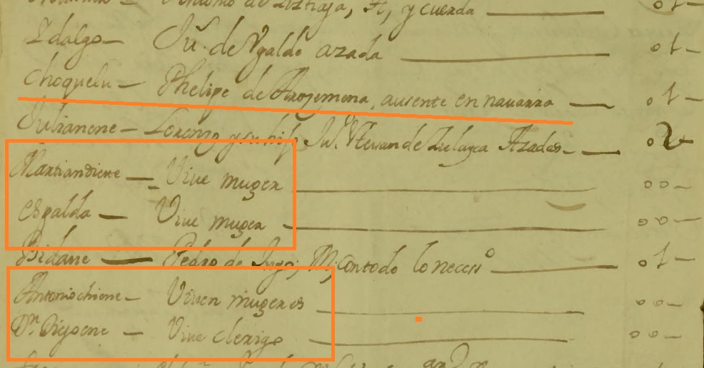 1706ko maiatzera jotzen badugu, Elizalde auzoan egindako errolda bat aurki dezakegu (A-1-13-1, 131 au.-149 au.), alardean ateratzeko egoeran zeuden gizonen inguruko informazioa biltzeko xedearekin egindakoa. Orriaren ezkerraldean etxeen izenak ageri dira; erdian, aldiz, bertan bizi zen pertsonaren izena dugu eta eskubian, bere menpe zeuden armen kopurua. Dokumentu honek, gainera, bereizgarri bat eskaintzen du, izan ere badirudi Elizalde auzoko etxe guztien errolda dela, ez alardean parte hartuko zuten gizonena bakarrik. Agindua, 131 au. folioan azaltzen den bezala, argia zen: “etxe guztietara iritsi (…) eta bakoitzean etxearen izena, bertan bizi diren gizonezkoena jarri, abizenak, izan ditzaketen armak eta beharrezko lituzketen munizioak jarriz” (“llegar a todas las casas (…) y en cada vna d’ellas ha de poner el nombre de las casas y de los hombres que biuen en ellas con sus apellidos y con las armas que tubieren y municiones necesarias”). Hori dela eta, hainbatetan, etxearen izenaren ondoan, emakumeak, elizgizonak edo egoera fisiko txarrean daudenak besterik ez zirela bizi adierazten da, baita gai zirenak baina, arrazoiak arrazoi, Bailaratik kanpo zeudenak ere: “Choquelu: Pphelipe de Arozemena, ausente en Navarra; Martinandiene: una muger; Espalda, una muger; Don Diegoene: Vive clérigo”. Hauek guztiak alardean ateratzetik salbuetsita zeuden, eta ondorioz ez dituzte beraien izenak aipatzen, gorago esan bezala, helburu nagusia militarra baitzen.