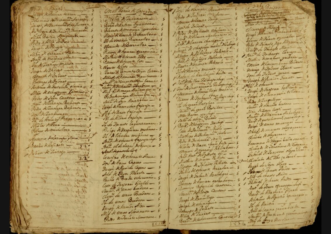 1709ko alardeari lotutako pertsonen erroldaren zati bat (A-1-14-2, 324 at.-325 au.)