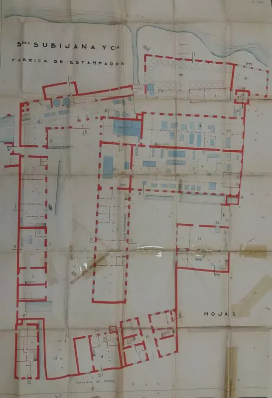Aurreko hilabetean Aljibera antolatu zen bisitetan parte hartu zenutenek ezagutuko duzue gaurko berri honetan jarri dugun argazkia. Estanpatuen fabrika osoaren planoa da eta bertan, argi eta garbi ikusi daiteke enpresak barnean zuen sistema hidrologikoa, ura behar zen tokietara bideratzeko kanalekin eta biltzeko uharka edo andelarekin.