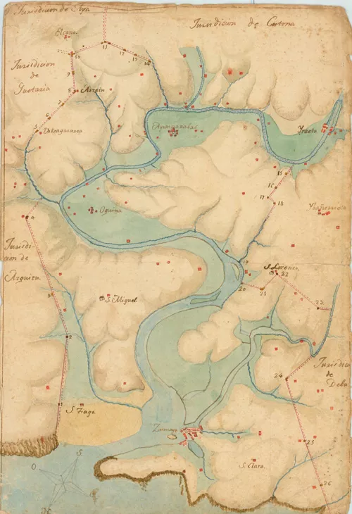 Irudian Zumaiako barrutia mugatzen duten 26 mugarri azpimarratzen dira. Beste plano batzuetan 27 ageri dira; hemen, berriz, ipar-mendebaldean Pikote baserritik gertu baina kostaldetik gertuago dagoena ez da irudikatzen. Edonola ere, espedienterik gabeko plano honek muga edo mugarritzeen gai horrekin zerikusia duela uste dugu.